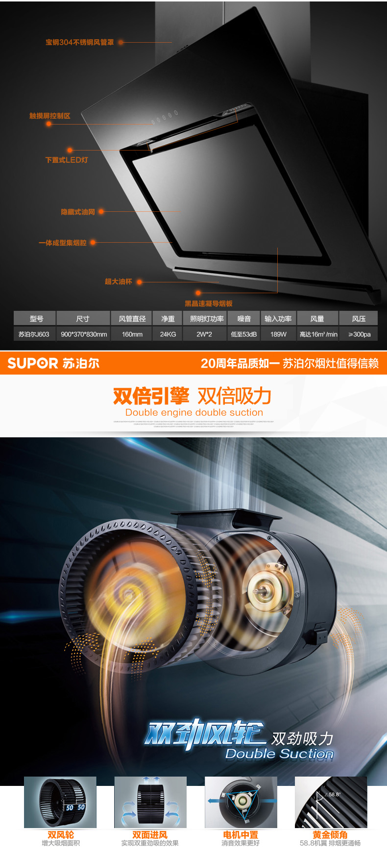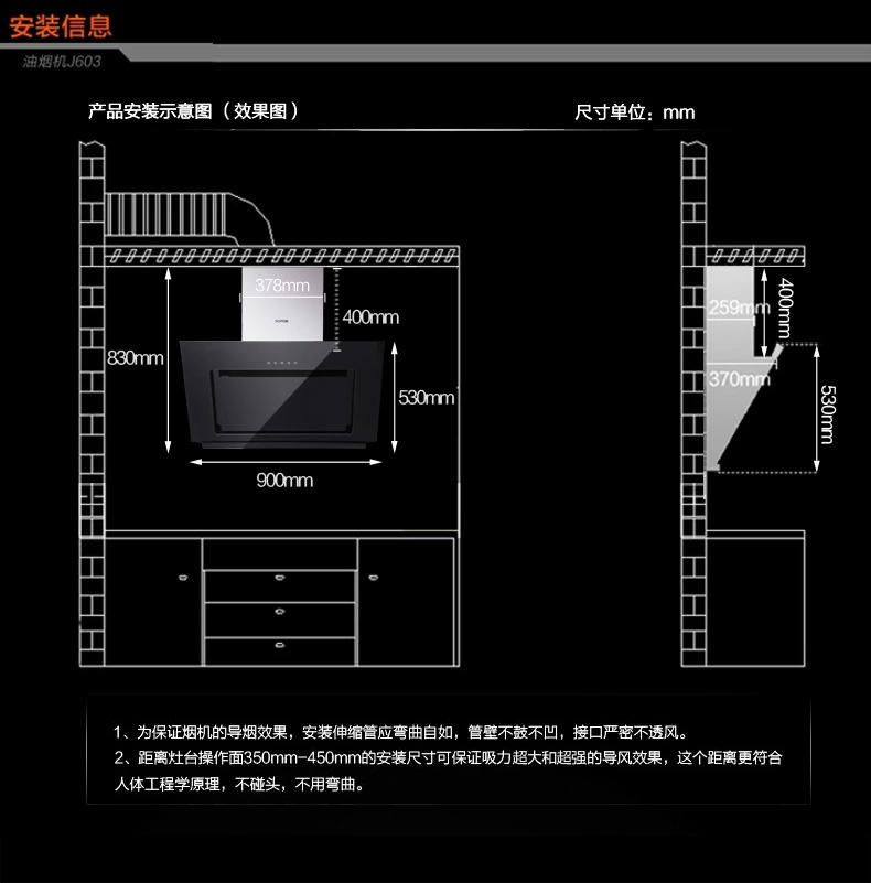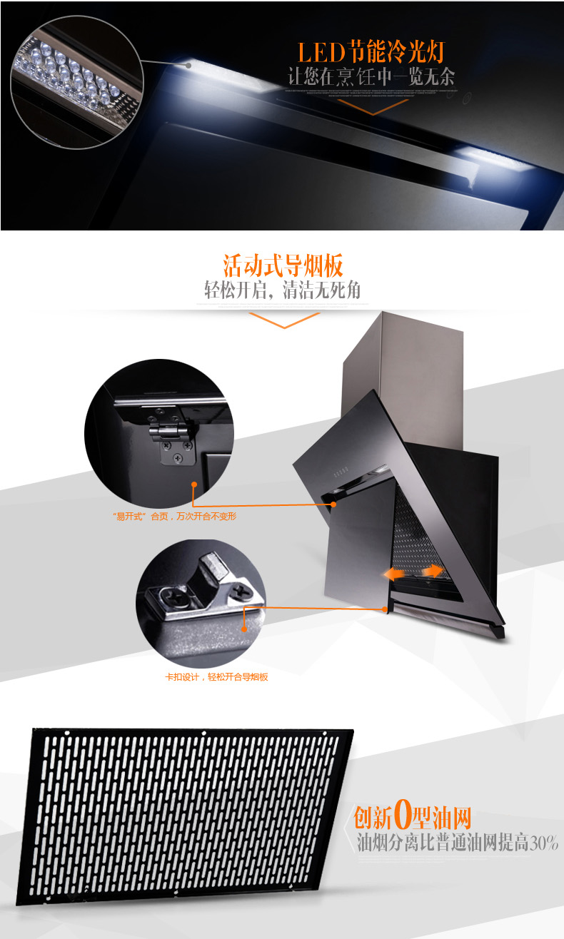材質(zhì):黑晶鋼化玻璃 功能:側(cè)吸式 排風(fēng)量:16m3/min 噪音:≤53dB 操控:觸摸式 外形尺寸:900*370*830mm