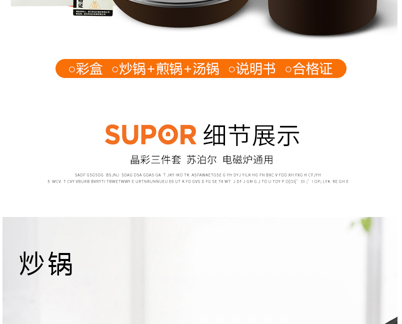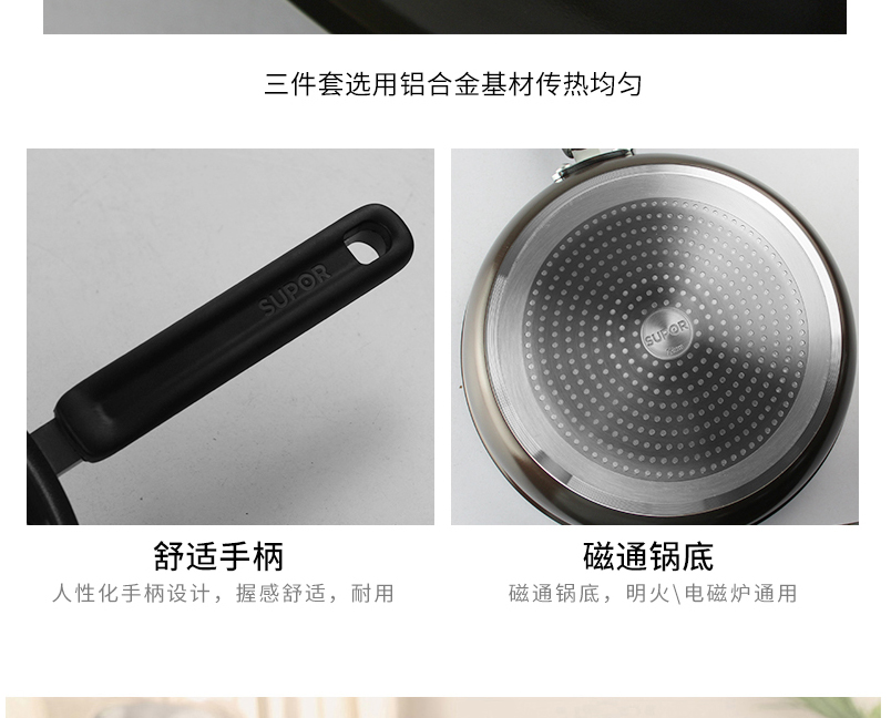 產(chǎn)品組成:炒鍋+湯鍋+煎鍋