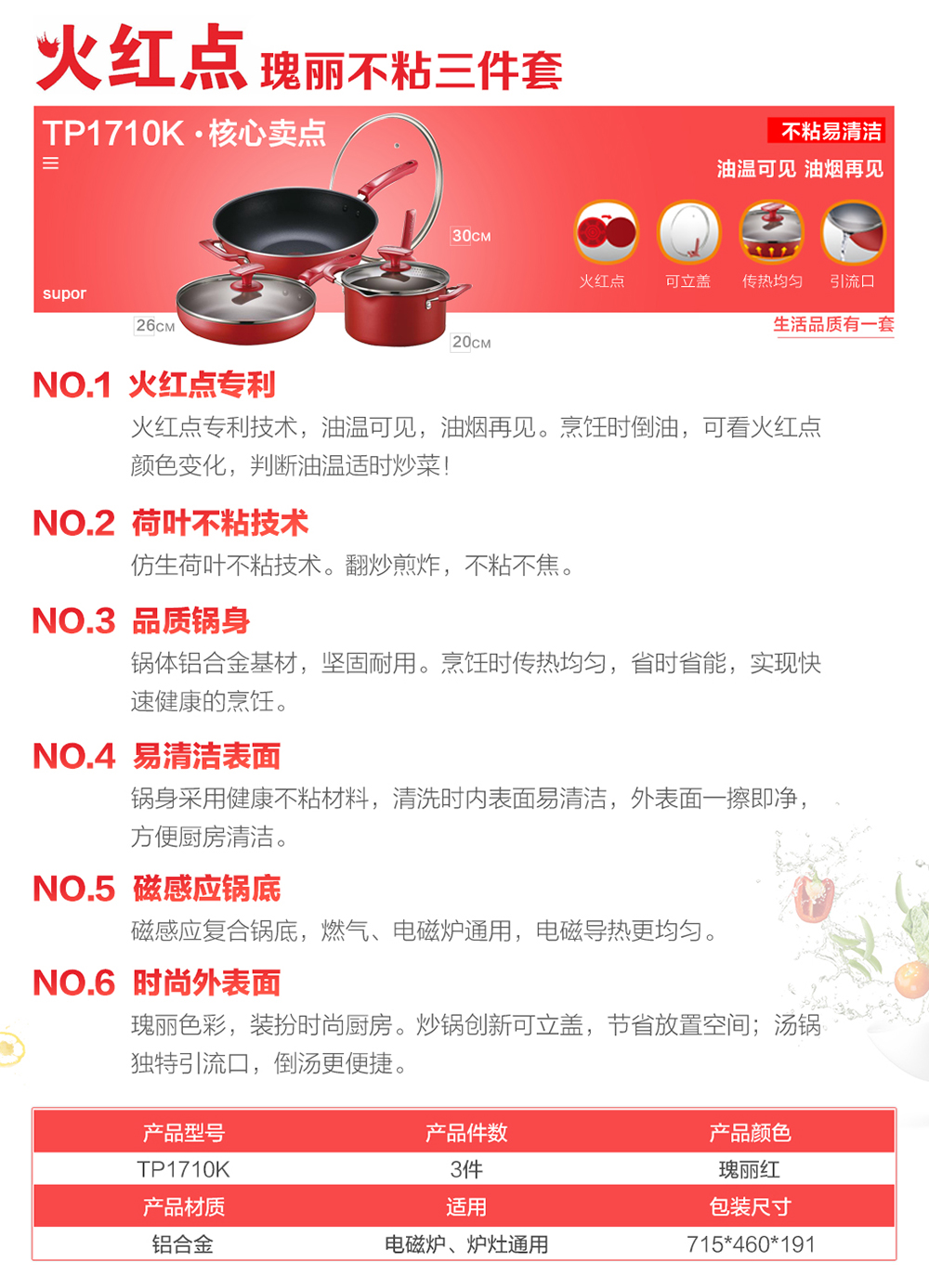 火紅點(diǎn)瑰麗不粘三件套