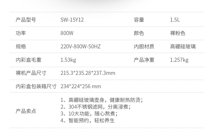 材質(zhì): 高硼硅玻璃壺身