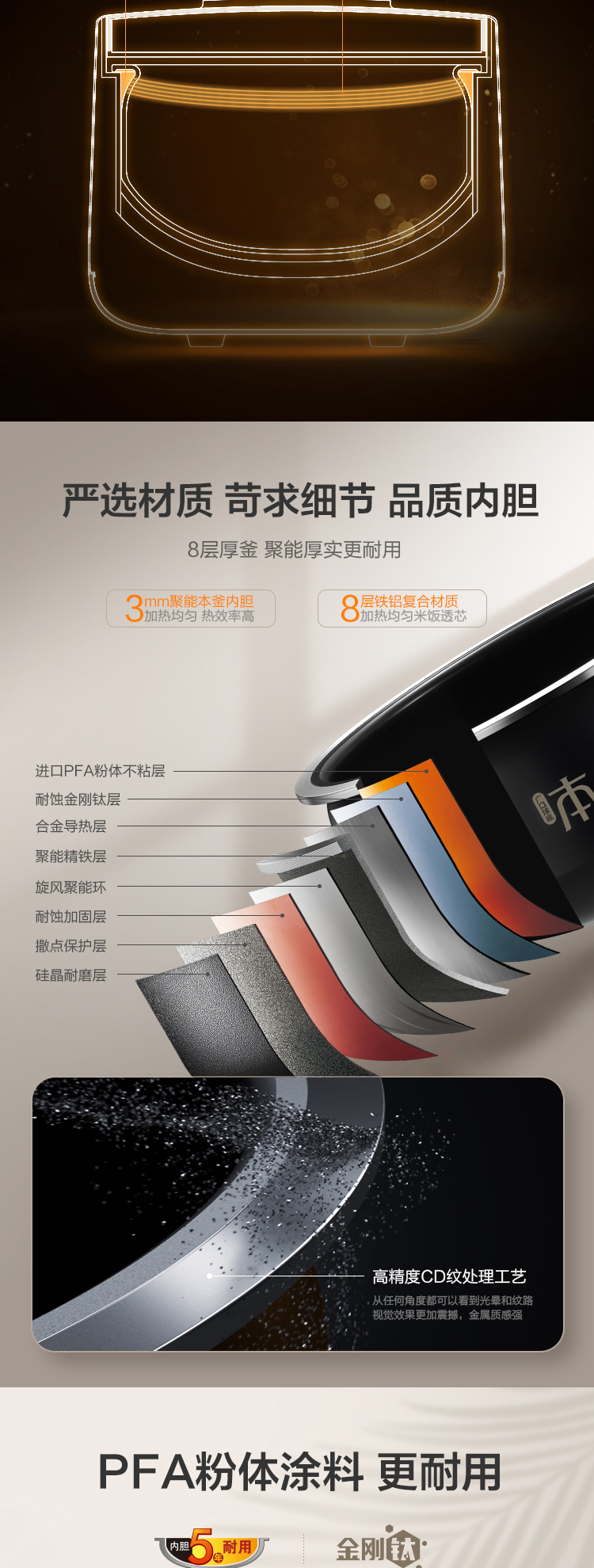 內(nèi)膽:3.0mm廣口球底八層聚能本釜內(nèi)膽