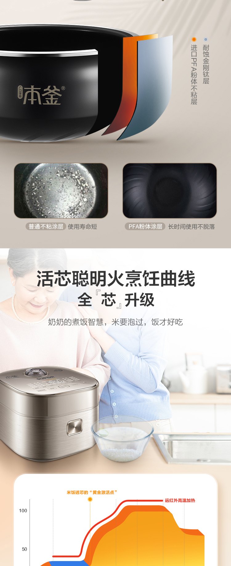 特點(diǎn):遠(yuǎn)紅外加熱、IH、本釜、快煮飯