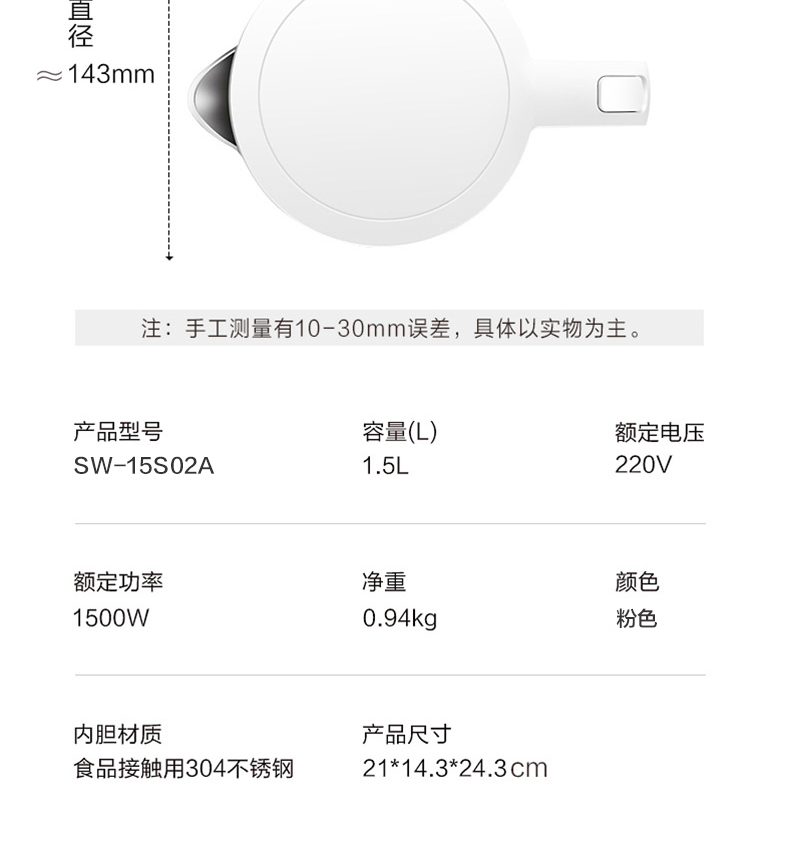 電熱水壺材質(zhì): 304不銹鋼